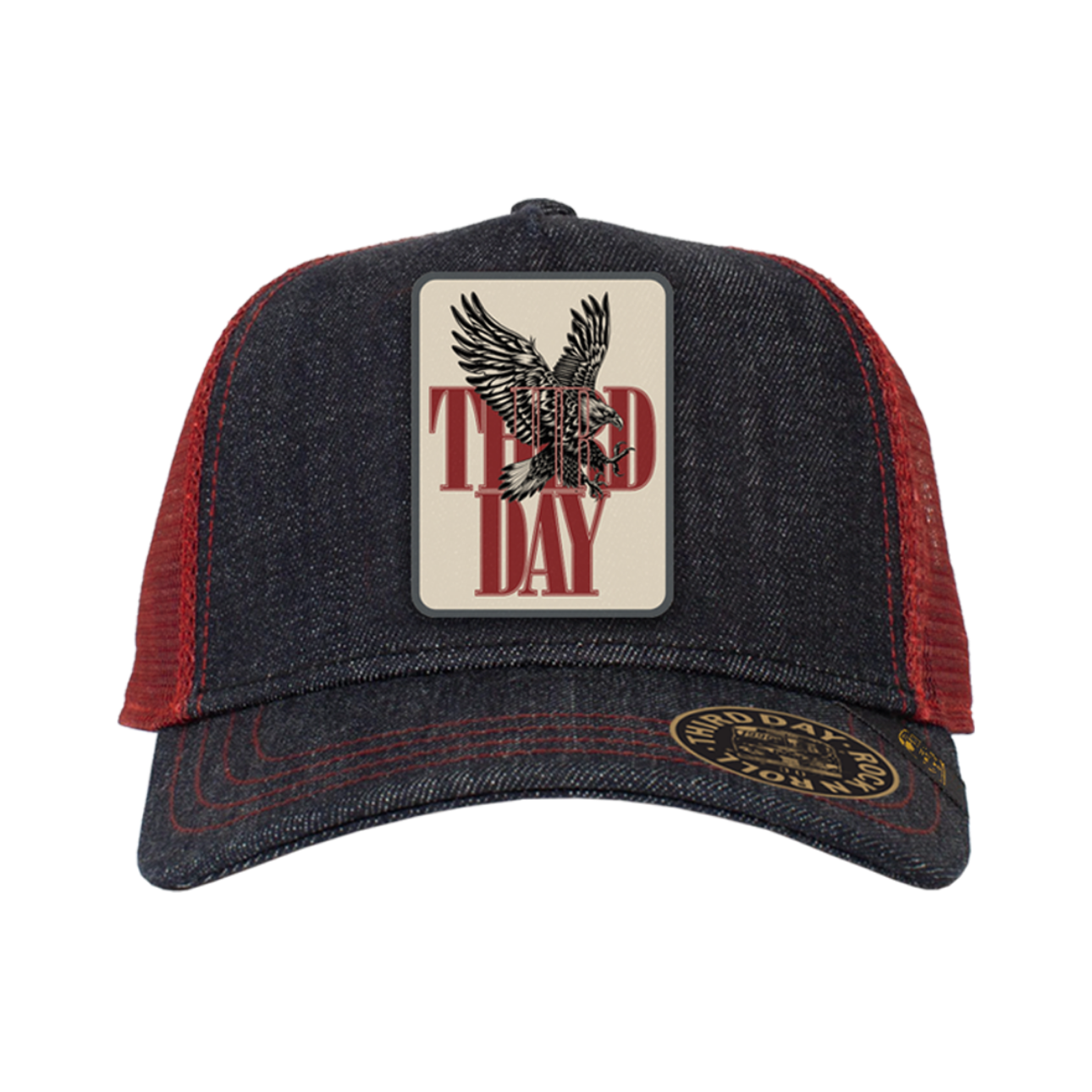 Blue and Red trucker hat with specialty 'Third Day' eagle patch. One size fits most.